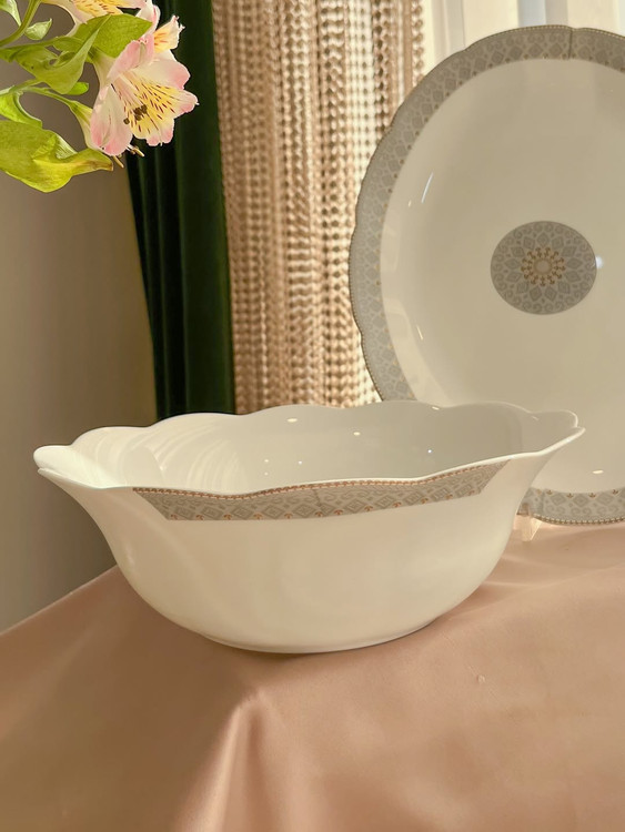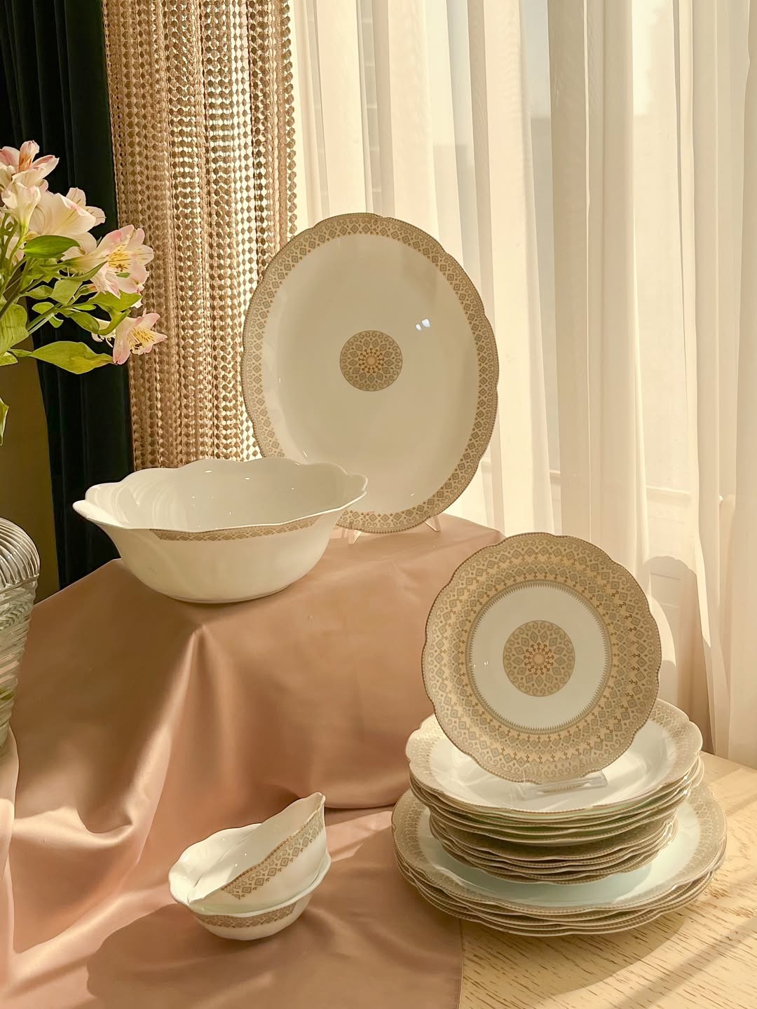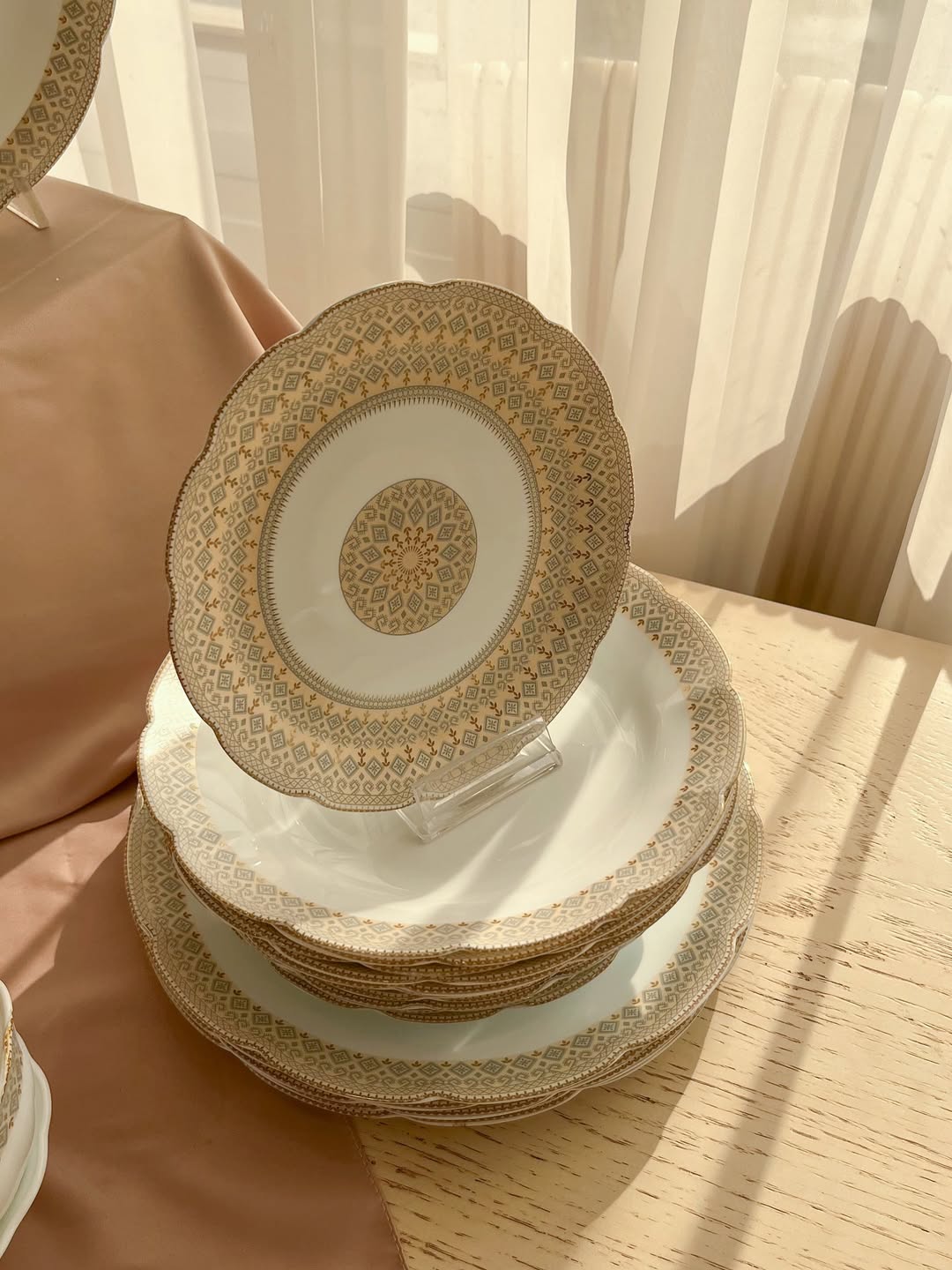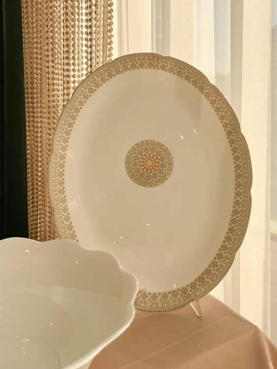 به علت طلای کار شده در ظرف, داخل ماکروویو نمیتوان استفاده کرد. این سرویس زیبا تولید گروه کارخانجات مقصود می باشد.اقلام سرویس :