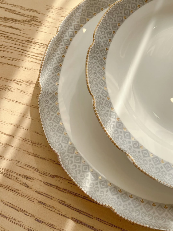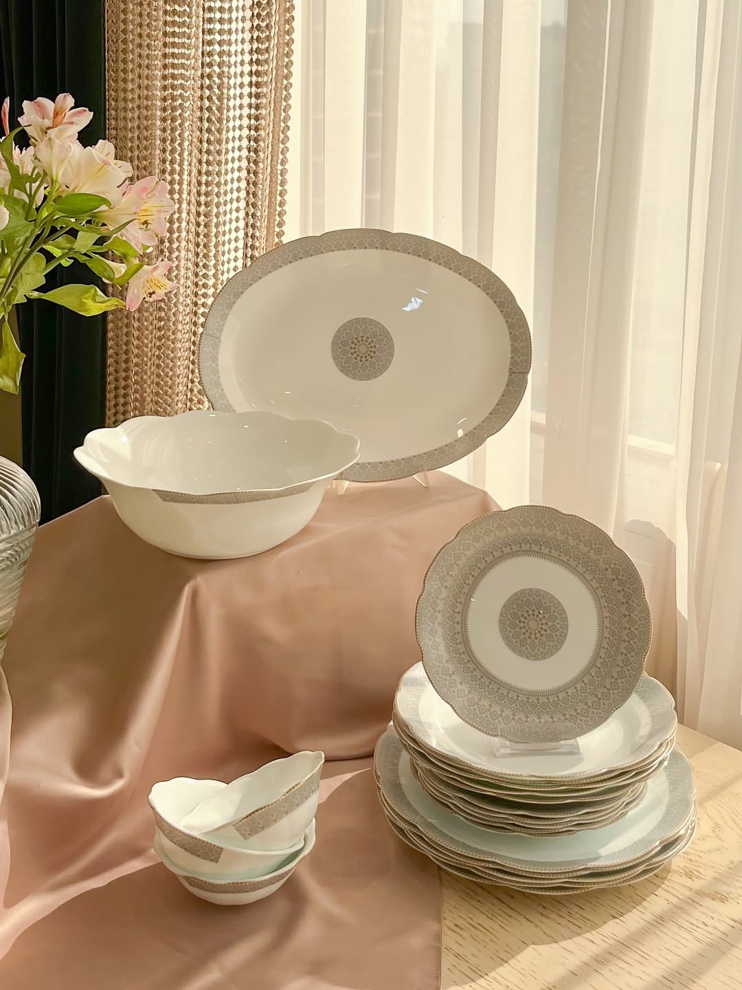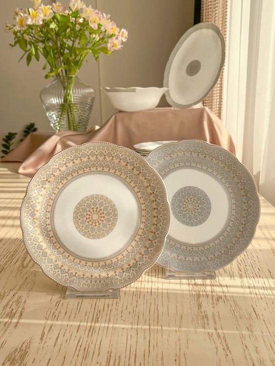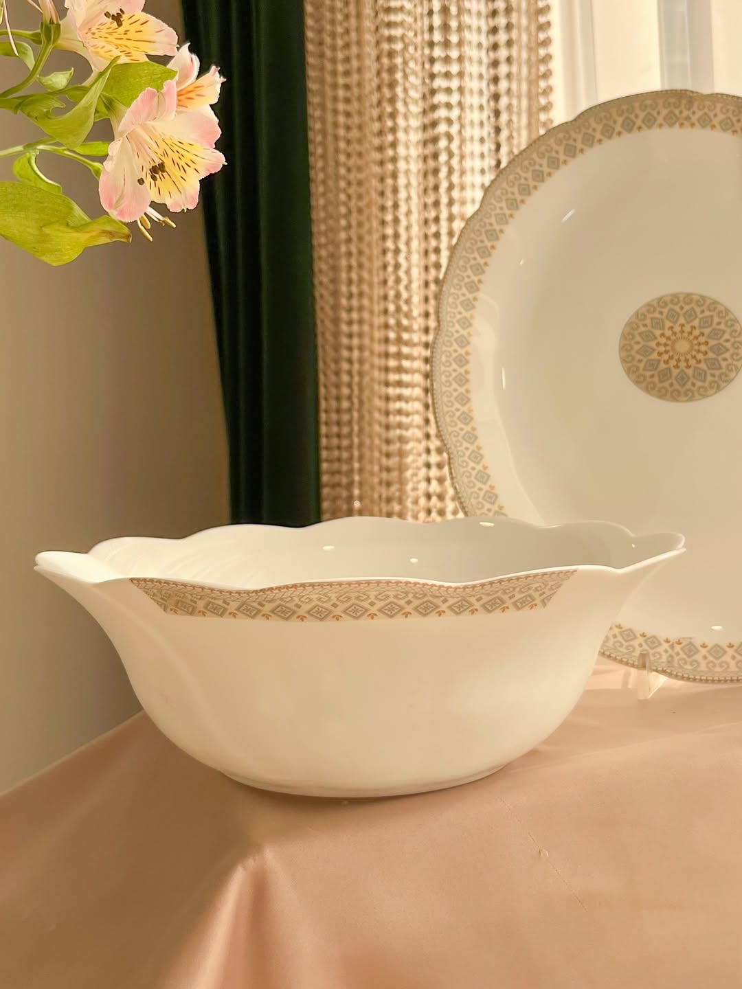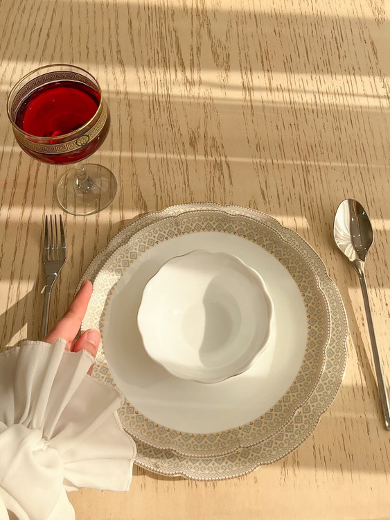 به علت طلای کار شده در ظرف, داخل ماکروویو نمیتوان استفاده کرد. این سرویس زیبا تولید گروه کارخانجات مقصود می باشد.اقلام سرویس :