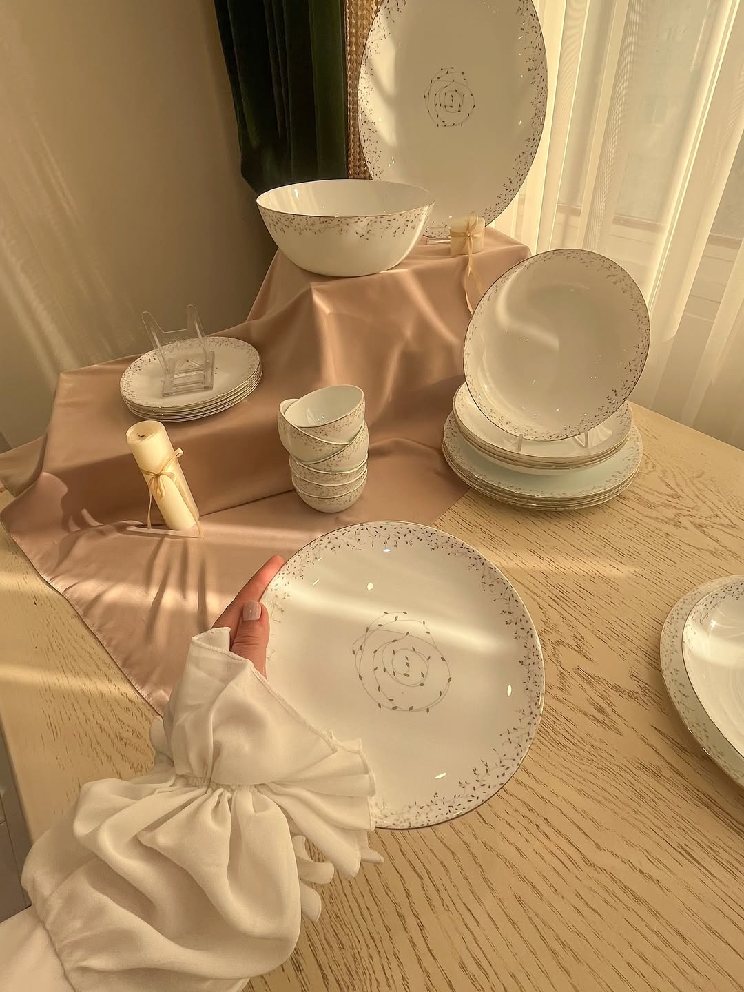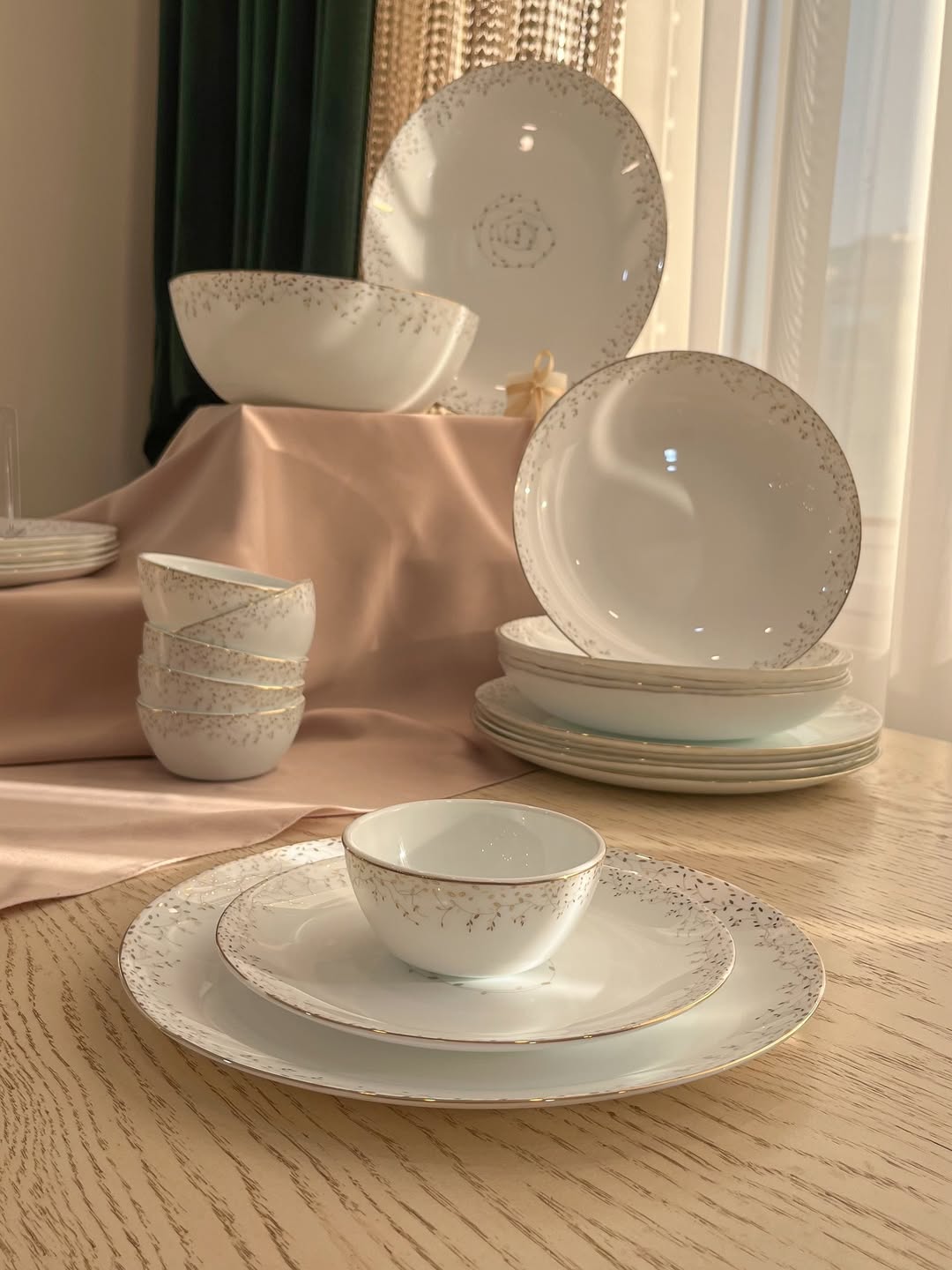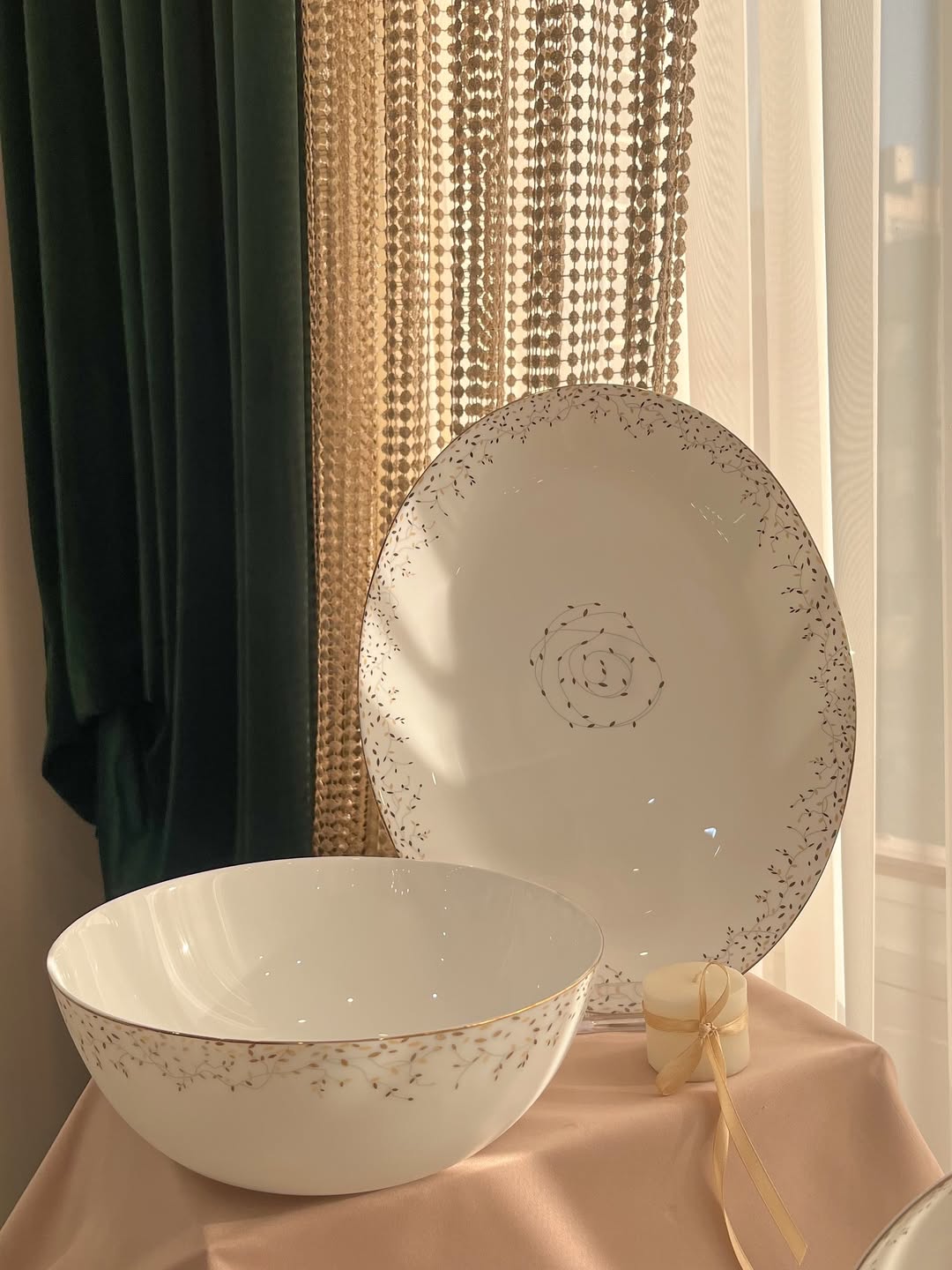 ارکوپال اسپرینگ همیشه پرطرفدار بوده و با طراحی لوکسش به یک انتخاب بی نقص تبدیل شده است.به علت طلای کار شده در ظرف, داخل ماکروویو نمیتوان استفاده کرد. این سرویس زیبا تولید گروه کارخانجات مقصود می باشد.اقلام سرویس :