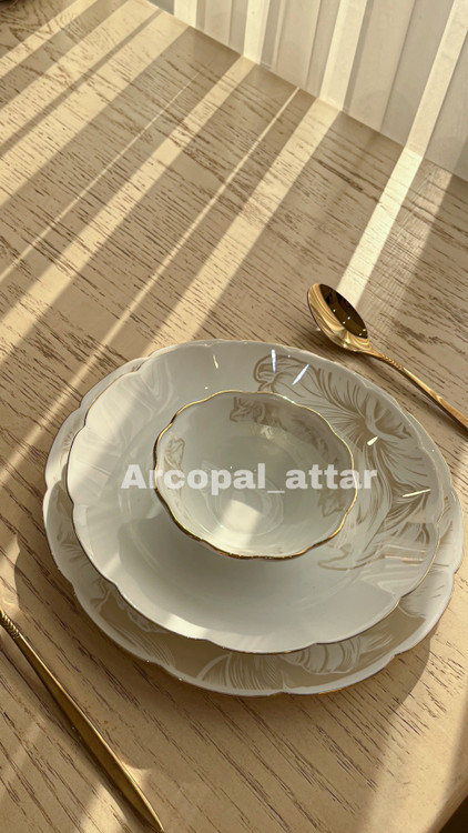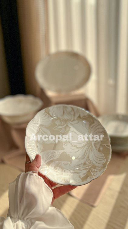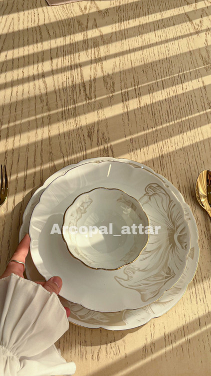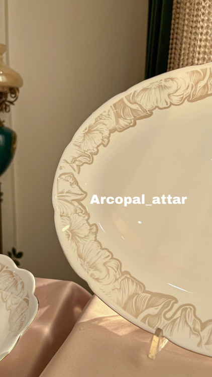 سرویس ارکوپال فلاور با دو رنگ طوسی دور پلاتین و عسلی دور طلا (عکس سایت) قابل سفارش هست.اقلام سرویس: