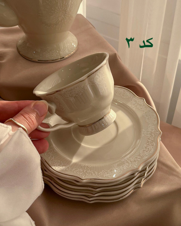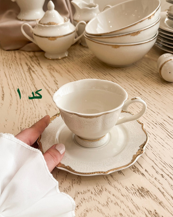 سرویس فنجان و نعلبکی چینی استخوانی ۱۲ پارچه ۶ عددی انجلیکا